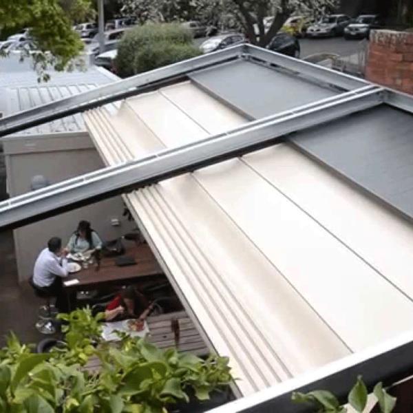 Aluminum Retractable Roof is made of powder coated aluminum structure with Waterproof PVC Fabric.
